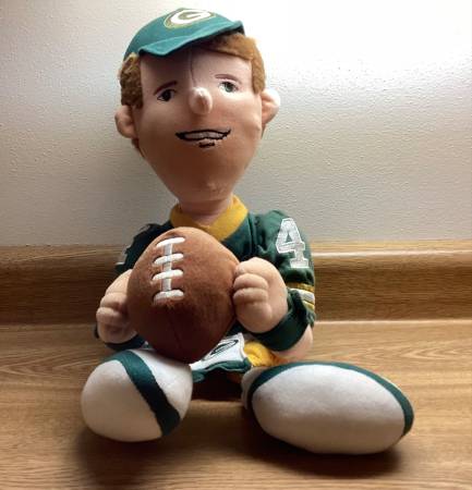 Brett Favre plush doll. Approximately 18” tall. He is meant to sit, not stand. Very good condition. 2 dolls available. $15 per doll.