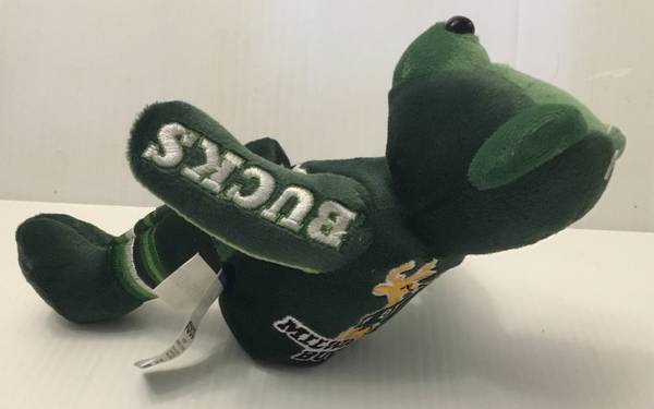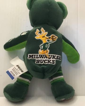 Vintage Milwaukee Bucks Beanie Bear from prior to 1993. This is the deer emblem used prior to 1993. Heavily embroidered with the deer on front and back, Milwaukee Bucks on his back, Bucks on both arms and NBA on the bottom of one of his feet. This is a rare Milwaukee Bucks item and still has his hang loop. $50.00. Please respond with date and time of pick up.