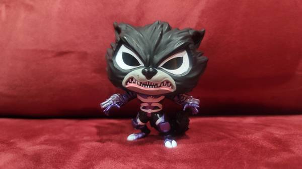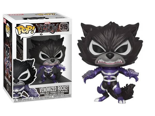 From Venom, Rocket Raccoon, as a stylized POP vinyl from Funko!