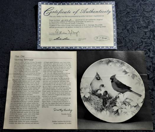 W.S. George Ceramic Art - "Nature's Poetry" entire 12 collector plate series by Lena Liu from 1989-1991. All 12 plates are in their original box which includes a numbered certificate of authenticity and a story specific to each plate. Additional pictures available on request.