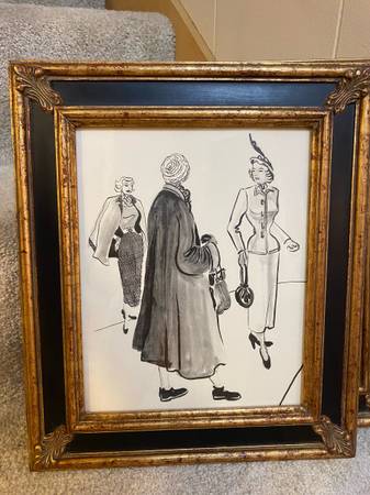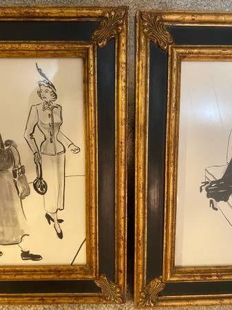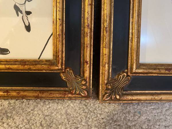 Black & gold, ornate framed Vintage pictures, artistic women -...