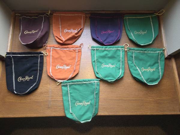 CROWN ROYAL WHISKEY 750ML Green Salted Carmel Black Drawstring Bags - $10