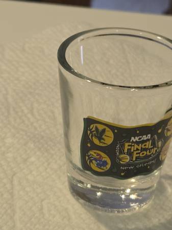 Final Four NCAA 2003 New Orleans Shot Glass Marquette Golden Eagles!! New Old Stock. Rarely seen!! Clean from a smoke free / pet free home!! Amazing piece of NCAA Men's Basketball history!! The product is a 2003 NCAA Final Four shot glass featuring Carmelo Anthony from Syracuse University, commemorating their championship win. This multicolored glass shot glass is a collectible item perfect for fans of basketball and the Final Four tournament. Features MARQUETTE GOLDEN EAGLES, SYRACUE ORANGEMEN, KANSAS JAYHAWKS, and TEXAS LONGHORNS. Made of glass, this original shot glass is a unique piece of barware that can serve as a reminder of a historic moment in college basketball.