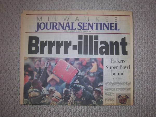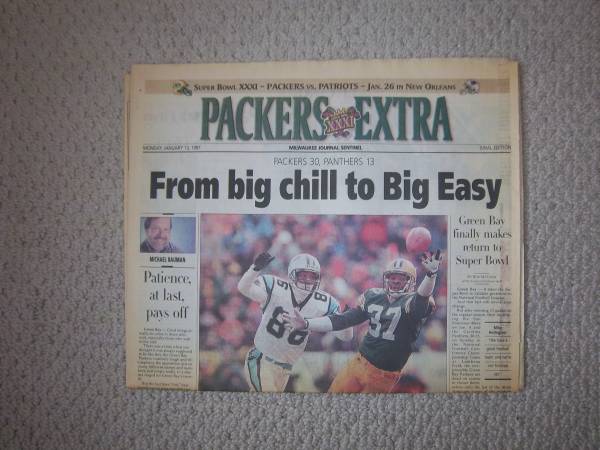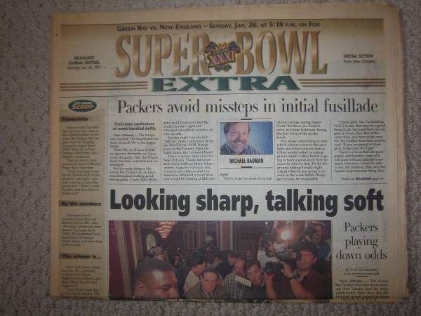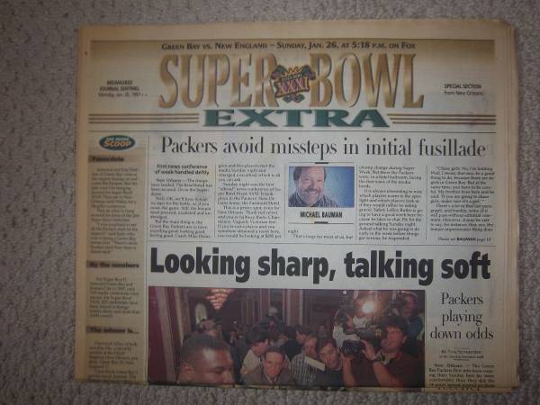 Milwaukee Journal Papers leading up to Packers Winning Super Bowl 31. (6) different printings January 13th thru January 23rd.