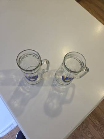 You get TWO matching Authentic Vintage 1980's MILWAUKEE BREWERS Baseball Glass Mugs in this sale. No cracks. Perfect condition. Simply stunning colors and graphics with unique design. Each measures approx. 7" tall by 2 3/4" at the mouth and 3 1/2" at the base. The glasses feature the old school brewer mit logo on one side with the words milwaukee brewers.