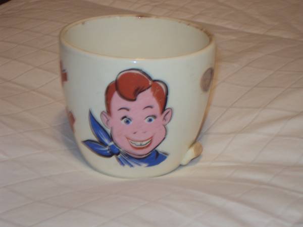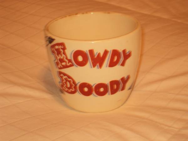 The second item is a small coffee cup with a picture of Howdy Doody and his sister Heidi Doody. Note: the cup’s handle is broken off and is sold “as is”. I have had these items since my childhood and I am in my 60’s.