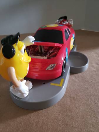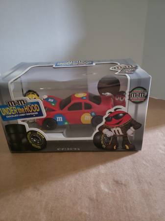 We have One New in the box M&M Candy Dispenser. Under the Hood Race Car Candy Dispenser, Red Limited Edition. Yellow and Red are the pit crew. New in the box, taken out only for photos....