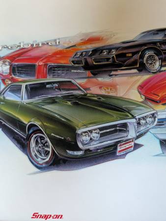 Snap On tools Pontiac Firebird Trans Am full color print. Measures 25 1/2" x 15 1/4". Not some cheapo poster that one might purchase at Walmart and put on a bulletin board. This highly detailed print on heavy paper is intended to be framed by a Pontiac enthusiast. Please feel free to ask questions and I will gladly assist and Thanks For Checking Out My Listing, Michael.