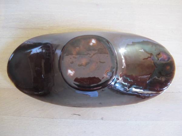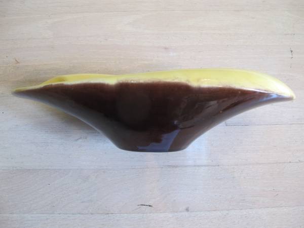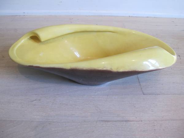 Unique Vintage Retro Yellow and Brown Glazed Curved Bowl Same as new condition Measures 6-1/4" x 13-1/4" x 3-1/2" H