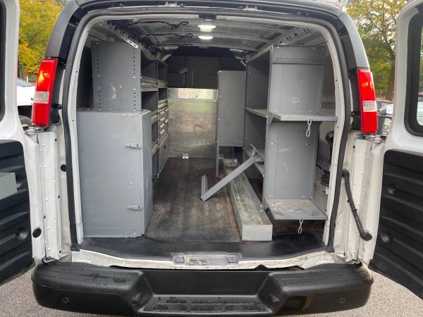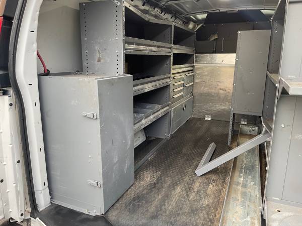 One Owner - 2018 Chevrolet Express 2500 Cargo Van (same as Chevrolet GMC Savana 2500), V6 4.3L engine, Automatic Transmission, only 107k miles, Air Conditioning, Power Windows, Power Door Locks, Backup Camera, Cruise Control, ABS (4-Wheel), no problems, nice shelving and cabin divider, power inverter... One Owner, well maintained, 3/4 ton heavy duty transmission and suspension, great running van, ready for work!