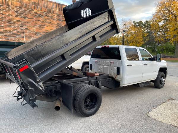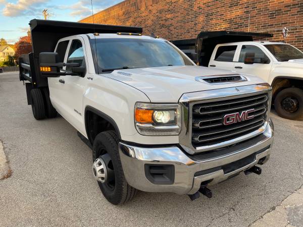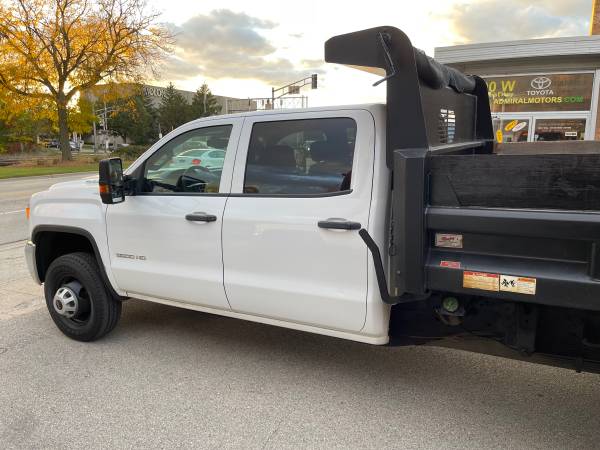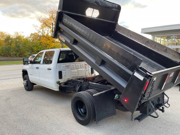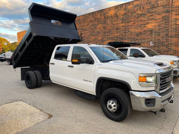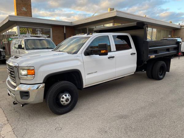 One Owner - 2018 GMC Sierra 3500 HD 3500HD DRW 4WD 4x4 Crew Cab, cab and chassis dump truck, Pickup Truck Crew Cab 4 door , V8 6.6L engine Duramax Turbo Diesel, Allison Transmission, only 144k miles, power winodws and locks, backup camera, no accidents... Good Tires and brakes, no leaks, no noises, no problems, dump body back door, ready for work !!! ...Please make appointment before you come see this truck. Call or text 847-392-8ooo ask for sales.