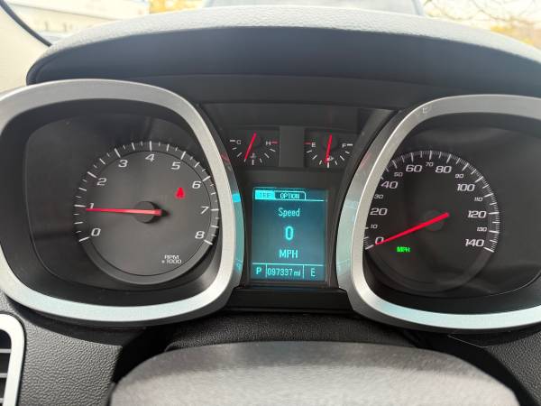 2017 Chevy Equinox LT. The Equinox only has 97,333 miles on the 2.4 liter four cylinder engine with an automatic transmission. We just safety inspected and serviced the vehicle. We changed the oil and filter, serviced the transmission and installed four new tires. The Equinox runs a drives great. The body is rust free and only has a few blemishes. The black interior is also in good condition. These Equinox’s get good gas mileage and are very safe to drive. This would be a great first car for that first time driver. The Equinox comes with a 12 month 12,000 mile power train warranty.