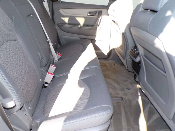 45 DAY SELECT AUTO WARRANTY ON THIS REALLY CLEAN 2016 CHEVY TRAVERSE LT. ALL WHEEL DRIVE WITH 105K MILES. POWER DRIVER SEAT. HEATED FRONT SEATS. HEATED EXTERIOR MIRRORS. KEYLESS ENTRY. REMOTE START. REAR A/C. BACK UP CAMERA. BLUETOOTH. SATELITE READY RADIO. 3RD. ROW SEATING. 8 PASSENGER. NEW TIRES. ALIGNMENT. BRAKES 90%. GREAT SAFETY.