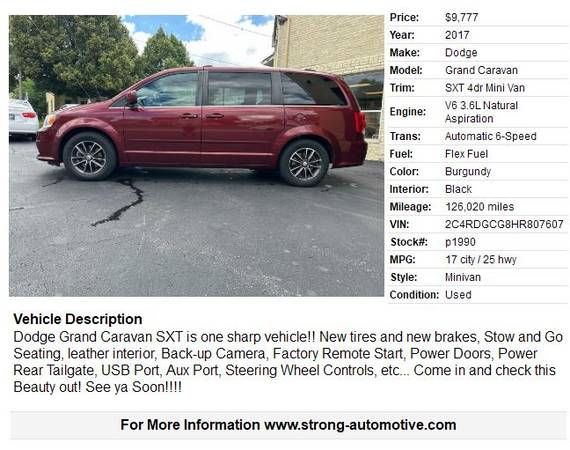 Dodge Grand Caravan SXT is one sharp vehicle!! New tires and new brakes, Stow and Go Seating, leather interior, Back-up Camera, Factory Remote Start, Power Doors, Power Rear Tailgate, USB Port, Aux Port, Steering Wheel Controls, etc... Come in and check this Beauty out! See ya Soon!!!!