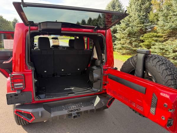 Super clean Sahara packaged 4 door Wrangler. Interior and Exterior are in great condition. Towing packaged with hitch receiver. Heavy duty steel Oedro front and rear bumpers. Newer battery end of 2024. New wheels and tires. New LED headlights. Newer brake pads front and rear. Privacy tint all around! Color match hard top and color match fender flares. Infinity sound system with factory subwoofer. 2 keys. 3.6 L V6 engine with 4x4. Clean title. Clean Car fax no accidents. Ready to drive. We have good lending options available!