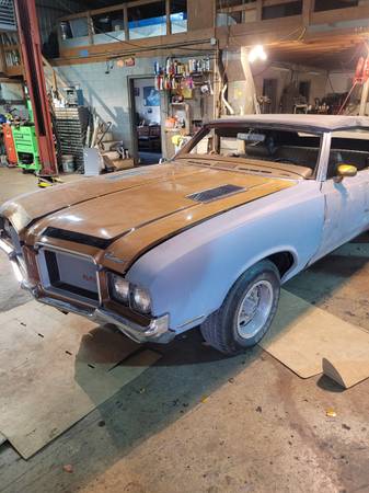 Listing for a friend. 1972 cutlass 442 convertible. True 29 code car. 350 automatic, posi differential. Has air conditioning. Has been to a few restoration shops but never finished. Frame is done and painted with new suspension parts. Interior is perfect. Engine gone through with hardened valve seats. Never started have new exhaust. Top is new. Have all trim and new brake booster and master. Body is solid with no rust. Call Gary 1(414)467-98 zero, one