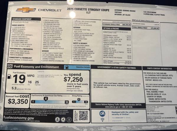 • 2025 close to 500 hp (Chevy says 184 mph) - mid Engine!
