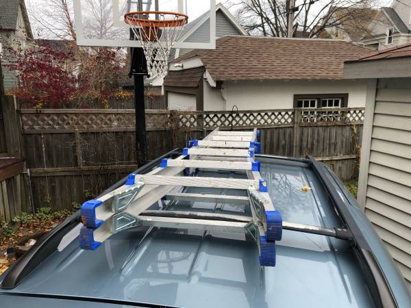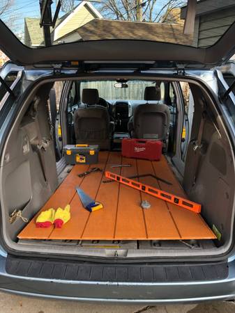 Tradesmen and contractors could use this for hauling materials and tools — 4’x8’ sheets of plywood will lie flat and 12’ 2”x4”s fit inside. Roof rack for ladders and longer lumber.