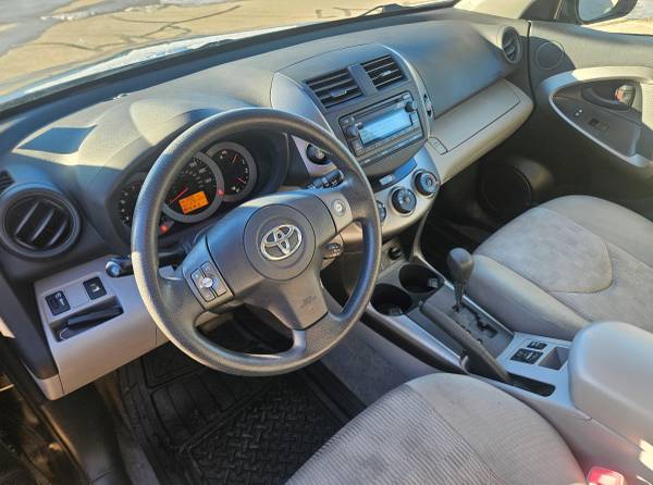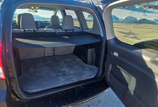 2012 Toyota Rav4 Sport-Edition, 4WD, V6 (3.5) Liter VVTi engine, Beautiful (Black Onyx) paint color with two-tone Gray Cloth interior, Electric Power Steering System (EPS), cruise-control, power doors, windows, and mirrors, tilt & telescopic steering, factory alarm system with Keyless-entry remote, rear wiper & washer, rear defogger, (17") Factory Alloy-wheels, roof-rack, (120 Volt AC) Outlet for small equipment/appliances, privacy Glass, adjustable seat-belts, rear spoiler with third brake lights, folding rear seats that can be activated from the cargo area, full size spare tire in new-condition, detachable rolling cargo-cover, matching set of Continental CrossContact All Season Tires, All Weather Rubber Floor Mats