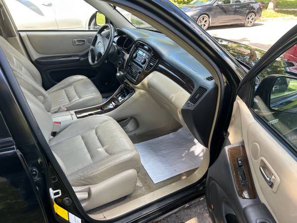 2003 Toyota Highlander.excellent truck super clean. Brand new tires super clean exterior.the leather is in great shape cold ac,excellent heat.moon roof and and its 4 wheel drive. Very smooth ride no noises.no check engine lites emission ready NO PROBLEMS if you drive it you will buy it. Its a Limited edition