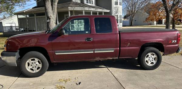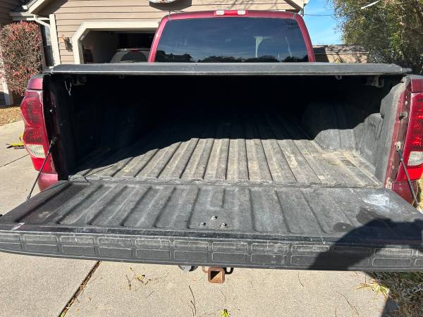 One owner pickup truck with only 125,000 miles. Dark Carmine Red Metallic with Gray Leather seats (6-way power driver bucket seat). It has Vortec 5300 V8 SFI Gas Engine and 4WD. Remote keyless entry, extended bed, Line-X bed liner and access rollup tonneau cover. Vehicle has some rust on fenders and rocker panels and the air conditioning is in need of recharging.