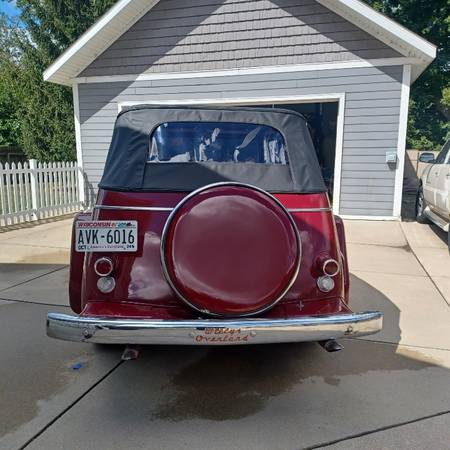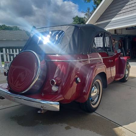 Beautiful 1949 Willys Overland Jeepster. RESTOMOD This vehicle was modded (or) customized in the late 70's (or early 80's) by the Shriner's organization. At that time the original drive line was converted over to a FORD 289 engine, a C4 automatic transmission, and an 8 inch rear end from a 1968 mustang. The Shriner organization converted dozens (maybe hundreds) of these vehicles back then to be used as parade cars. Obviously the conversion was done well, as it is still running great today. This conversion started out as a very solid vehicle as the paint is still in great condition with relatively few flaws or issues. I am sure that being a parade car helped, as it was most likely garaged during the off season, and rarely if ever driven in bad weather...