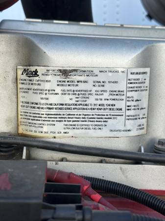 2013 Mack CXU613 with MP8 Engine,505 HP & 12 speed automatic transmission (M drive 12).Truck was recently in a accident (jack knife) .A lots of new parts on this truck:2023 October /6 new injectors,2024 March new turbo&water pump with water pump housing.In February 2025 I replaced new EGR Valve,DPF filter serviced with new inlet/outlet sensors.Engine and transmission are in excellent condition,also I put on new rotors and brake pads,new 8 drive tires.Truck is NOT IN DRIVING CONDITION due to accident (totaled by insurance claim adjuster).Truck will have to be towed.