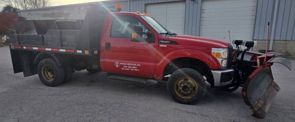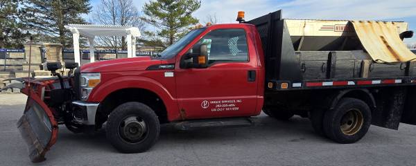 2015 Ford F350 Super Duty Cab & Chassis Truck · Driven 70,000 miles XL 4x4 6.2L gas Last DOT 10/25/2024 Truck has +flat bed +9.5ft Hiniker Poly V-Plow +955 Hiniker 2.75 Cubic yard Salter...