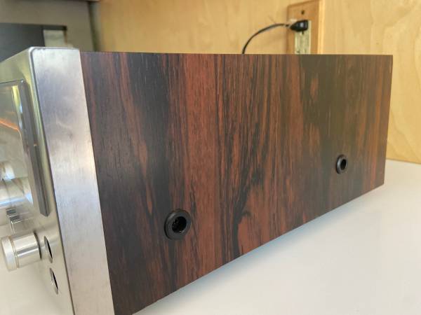 Rated at 50 watts per channel. Neat analog and digital tuner. Also has digital read out indicators. Features, one tape in/output, one phono input, one aux input, front right and left tape play aux inputs, subsonic filter on/off, loudness on/off, selectors - tape/aux - phono - FM mono - AM, separate bass and treble tone controls, tone controls on/off, mic input, mic mixer level, signal and tuning digital indicators. Very nice receiver to add to your hi fi set up for playing those vinyl LP record albums. Gorgeous rosewood cabinet surround and chrome face