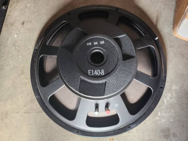 This JBL E-140-8 is one of the most desirable and best sounding Vintage JBL 15" Bass Speakers ever made. The E140 is capable of producing extremely high sound pressure levels with an efficiency that's unmatched by any other bass speaker. JBL used these in there Cabaret Series Speakers plus others used as an option in there Bass Guitar Speakers. All of my E-140-8 Speakers came from JBL Cabaret Speakers and all made in 1986. These have both efficiency and power handling, what a wonderful combination. Rated at 200 Watts Continuous Sine Wave plus 100dB/1W/1M efficiency make these 15" speakers a true contender for any application. Cast Aluminum basket and copper voice coil is 4 inch. These weigh in at over 22lbs each. If you are putting together a vintage JBL home speaker system or have a keyboard or bass guitar speaker system you want to put these gems into they are sure to please. Sweep tested with oscillator and amplifier plus I shall demo this test prior to purchase. Thanks//Larry