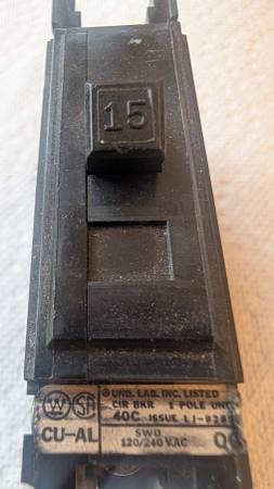 Westinghouse 1 pole Quicklag-C 120/240 VAC Q0 Bolt on style. Removed from lighting panel. 15A pictured. 20A also available. Many in stock.