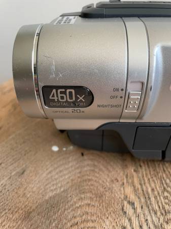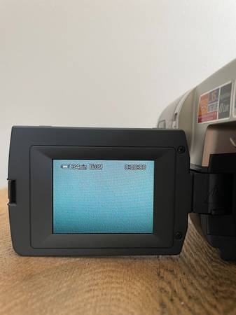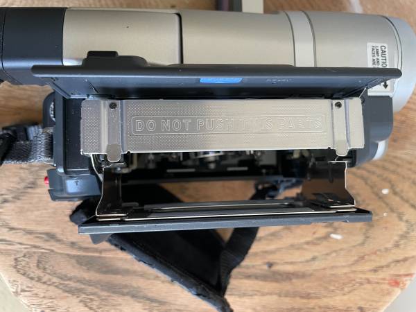 There are slight scratches on the camcorder (see photo) and the hand strap is flaking (see photo). The tape compartment is in working condition and ejects tapes. Overall it is in great condition.