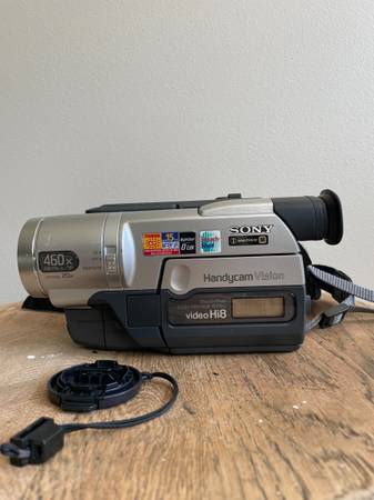 Sony Handycam CCD-TRV308 Hi8 Camcorder. A handheld camcorder perfect for capturing memories on Hi8 tapes. It features an LCD screen for easy viewing, NightShot function to shoot a subject in a dark place, built-in light and a built-in microphone for clear audio recording. Made in Japan. Original Owner.