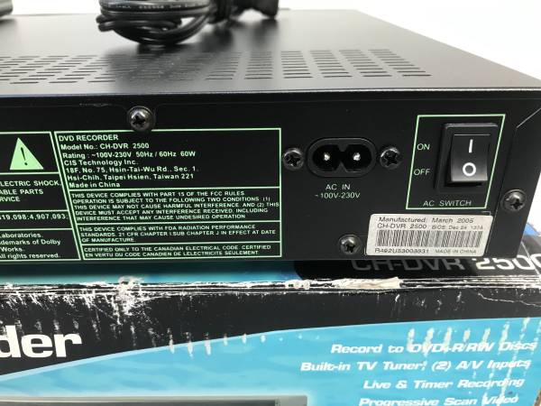 CyberHome CH-DVR 2500 DVD RECORDER / PLAYER with Remote in original box complete! NON-SMOKER UNIT!!! Cash & Carry ONLY!!! $125 as is working as it should!! Text or Call Thanks for looking