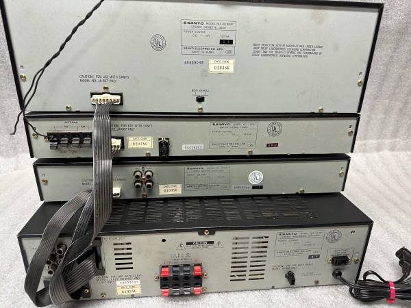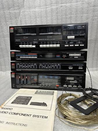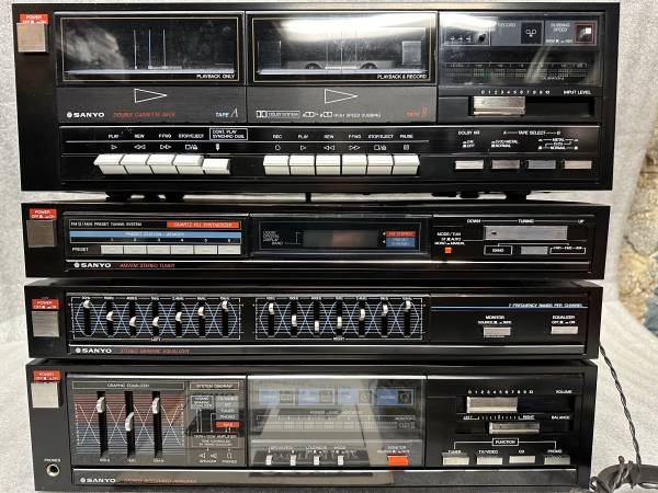 HIGH OUTPUT!!! SANYO 687 / 4 PIECE STEREO SYSTEM COMPLETE RACK SYSTEM. AMP ,120 watts per channel / 240 TOTAL. POWERHOUSE!!! Tuner , Eq, Dual cassette deck With BOOK and WIRES , Looks and works like NEW!! NON-SMOKER UNIT!!! Google it than Text or Call show contact info
