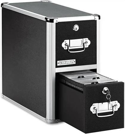 Vaultz 2-Drawer CD Cabinet, Holds 330 Files or 120 Slim Boxes/60 Standard Boxes, Black, No Key Included