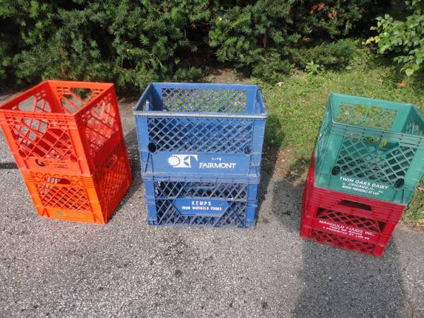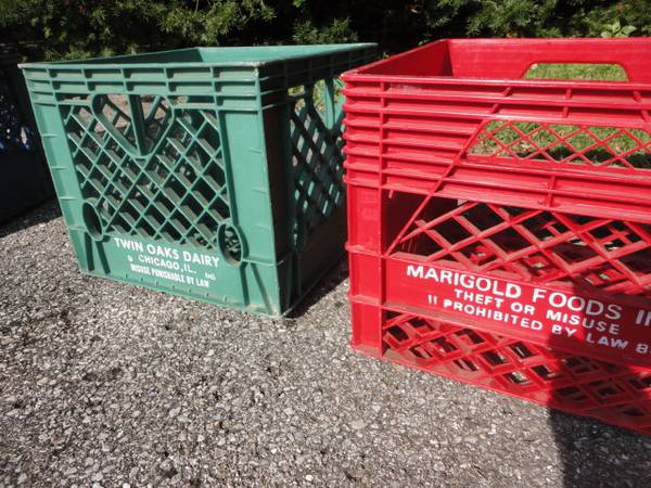 Vintage milk crates, priced from $10 to $20.00 each. Many other crates available.