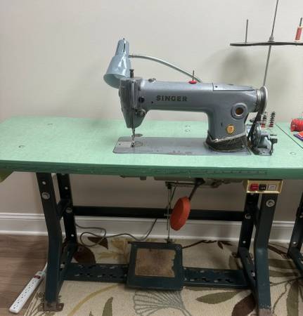 ....Heavy duty industrial Singer machines type used by horse saddle makers, sailmakers, canvas makers, production piece work, etc. Does straight stitch and zig-zag. Includes the table and the motor. Has foot petal and leg bar that lifts the foot so you do not have to use your hands Unit is in good condition......$400 per machine. . . BUY BOTH SAVE 100 DOLLARST1.....Trade willing for a post (shoe leather) machine of sorts!