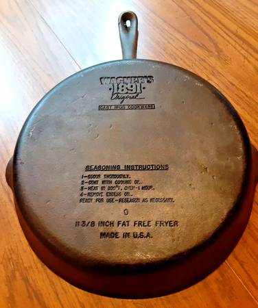 ...Wagner's 1891 11 3/8 inch cast iron griddle/fry pan, newer used once.............$30