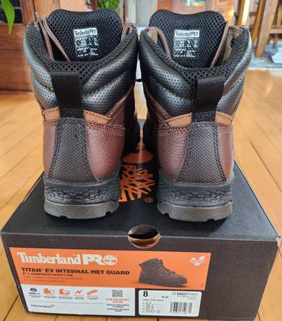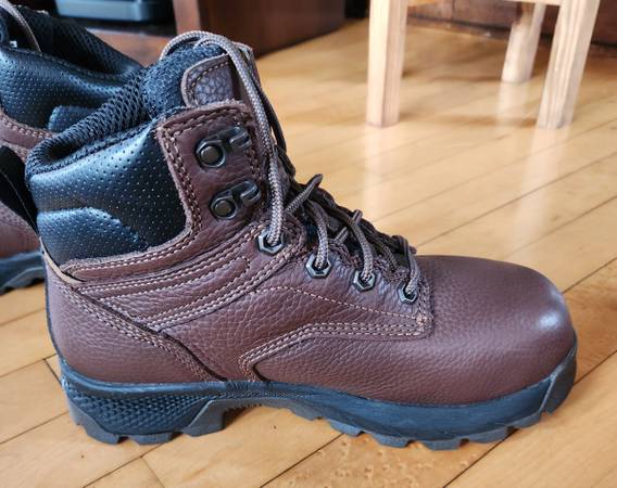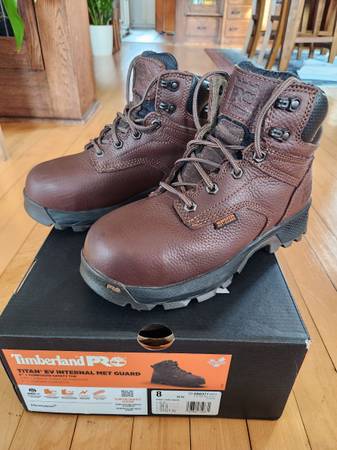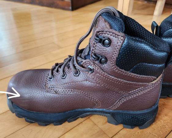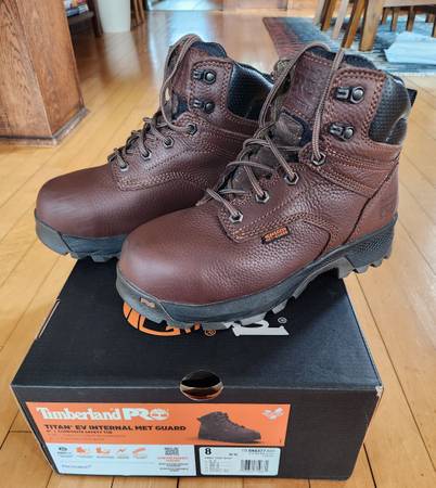 Slightly worn womens steel toe with Metguard. Great condition. Worn 4 times. Some scuffs on the toe box as shown in pictures. Timberland PRO makes a great work boot. Size 8 women