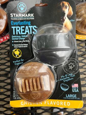 Unopened package of Starmark Everlasting Treats, Chicken flavor (pack of 2). Can be used with ball (if you have one or buy one) or just separately. Expires in 2029.