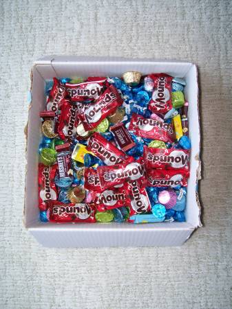 ONE CASE, WEIGHING FIVE POUNDS, OF FRESH {Best by Date 12/31/2025}, ALL "HERSHEY'S" BRAND, ASSORTMENT OF CHCOLATE, FULLY WRAPPED CANDY. INCLUDES: KIT KAT'S / HERSHEY'S BARS / COCONUT MOUNDS / REESE'S PEANUT BUTTER CUPS / HERSHEY'S KISSES. ONLY BEING SOLD, DUE TO HALLOWEEN TRICK AND TREAT DATE, NO LONGER MATCHING MY SCHEDULE. $10.00.