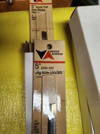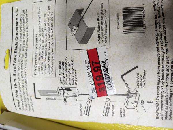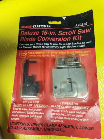 New Deluxe 16 inch Scroll Saw Blade Conversion Kit with many new blades (3 white boxes full of blades) as shown. Sears Craftsman model 922259.