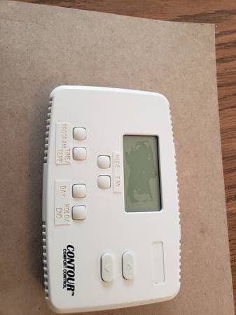 Contour Comfort Control Model number 41-24312-040 Rheem Programmable modulating thermostat. Lighted, Can set each day individual for 3 time period temperatures (wake, day, evening) in good working...