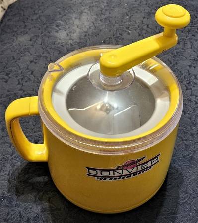 "Donvier" Ice Cream Maker - in near mint condition. No missing parts. No damage. Includes a 90+ page book of recipes. Makes 1 quart. Made in Japan.
