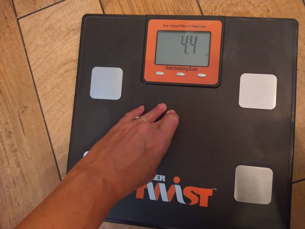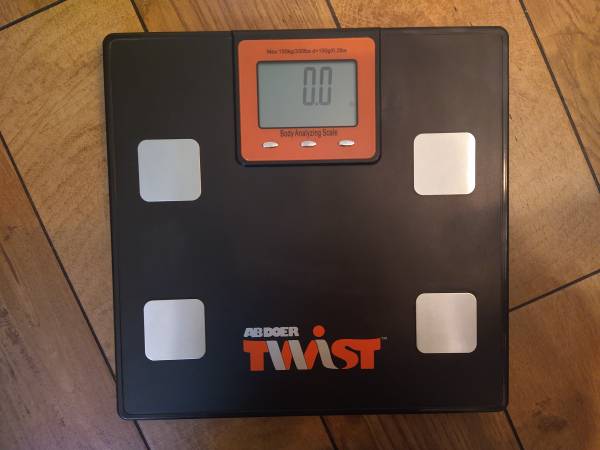 *measures body weight, fat, hydration,. muscle, bone, KCAL readings.