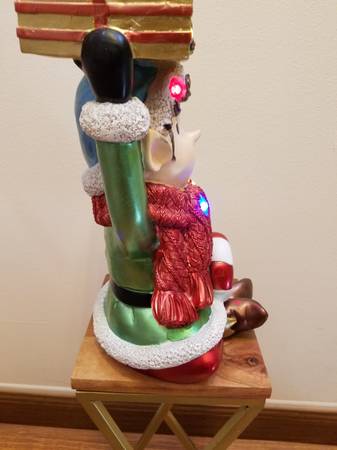 New in box.... Christmas Elf by Kringle.....with lighted multi-color gem lights... 2 AA batteries....6 hours on / 18 hours off timer...optional... 12" H x 7.87" W.....Resin material... From a...
