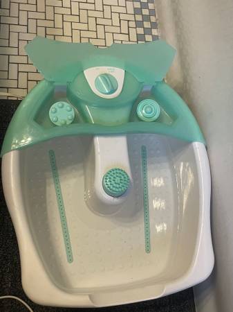 Conair Foot Spa Bath with 🫧 bubbles. 3 interchangeable massage / scrub pads. Portable Tub. Good clean condition. Spa con masajes de burbujas para los pies de Conair.