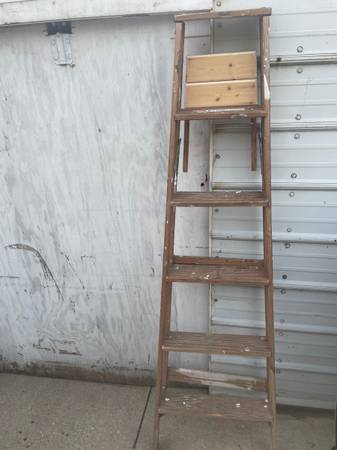 6 Ft Keller Wood ladder 🪜 Model W-6. 200 lb capacity rating. 69” H x 21” W. Some cosmetic paint splatter. Delivery extra. Habla Español escalera de mano de madera de 6 pies Good for house painting...