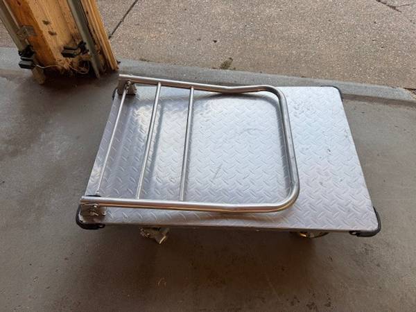 Heavy Duty utility cart with folding handle and 2 wheels that rotate and lock. 24"x36" deck and holds up to 2,000 lbs. Bought for a project and it didn't fit the need so never really used it. Paid...